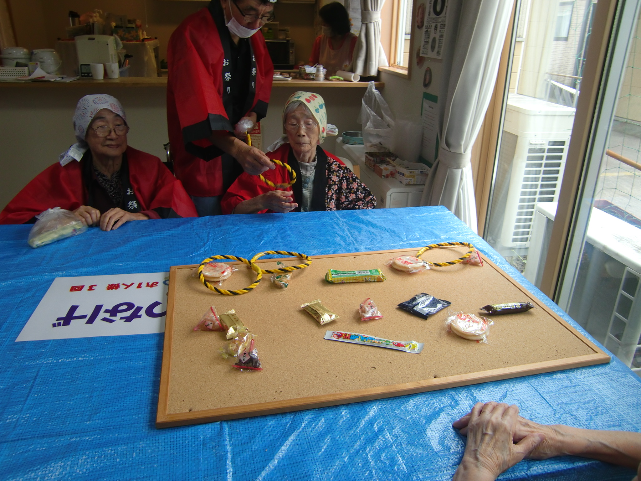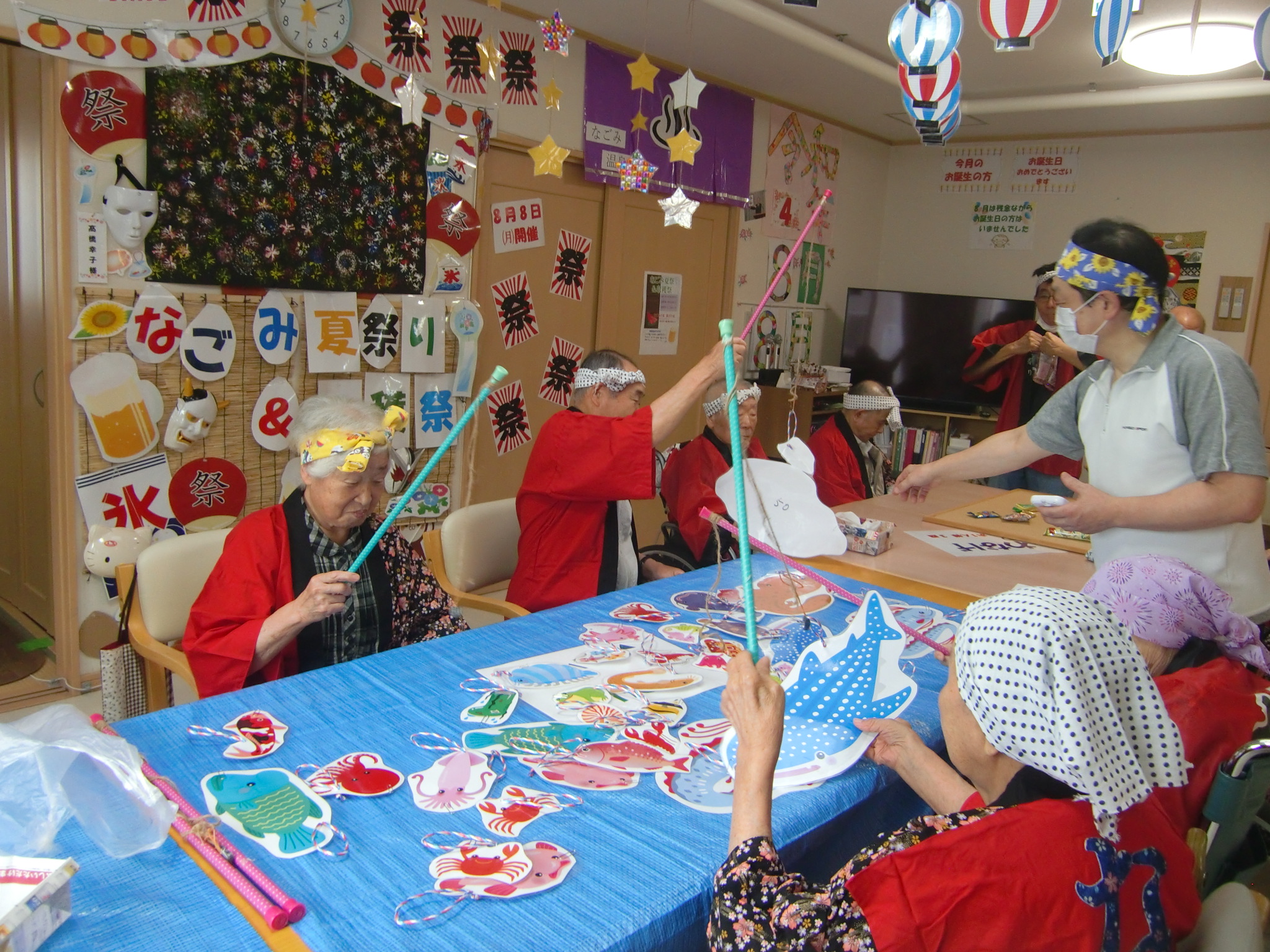 8/8夏祭りとなごみ畑の収穫祭を行いました!輪投げや魚釣りゲームをしたり、綿アメを作って食べたりした後は、なごみ畑で収穫した野菜などを召し上がっていただきました♪